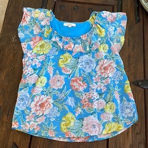 LOFT 2022 summer floral lined Ruffle top . NEW condition . SZ Large