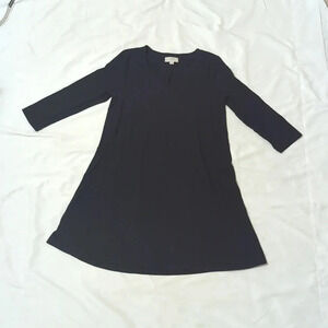 LOFT 3/4 Sleeve V-Neck Swing Dress, Color Black Size XSP