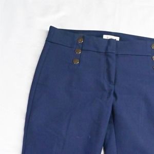 LOFT 4 Navy Blue Gold Button Sailor Modern Skinny Ankle Womens Dress Pants