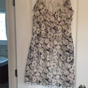 Perfect dress for special occasion. Very light weight with ruffle on sleeveless top. Ribbon pull accent at waist