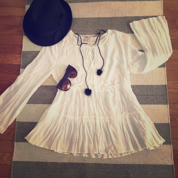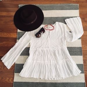 Bohemia style blouse//: white // long sleeve bell style // Size M