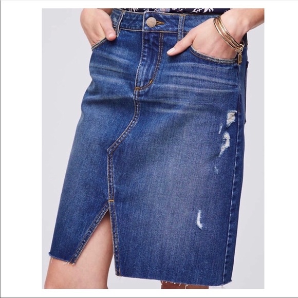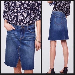 LOFT Denim skirt with slit | Never worn | Measures 16” waist laying flat | 20” long | Raw edge