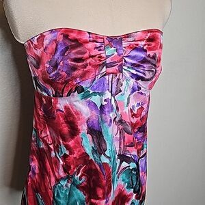 LOFT 6 Bustier corset Strapless Bandeau top Satin Watercolor floral red purple print in excellent condition, with inner support and side zip. Would be so cute worn over a thin button up Blouse.