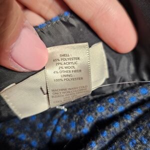 2% wool blend skirt with button detail. Questions? Please post in the comments. Thank you.
