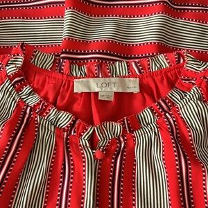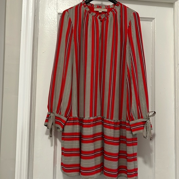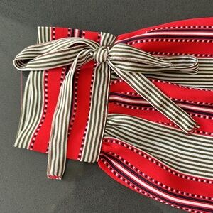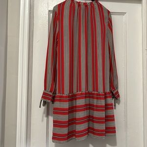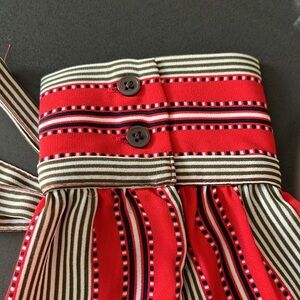 Red multi stripe, drop waist, long sleeve, lined, 100% Polyester