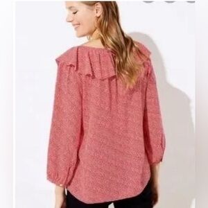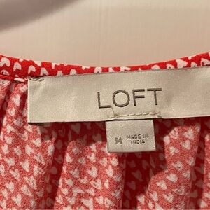 LOFT blouse. Red with white hearts. V ruffled neck. Great condition. Smoke free home.