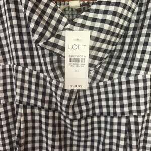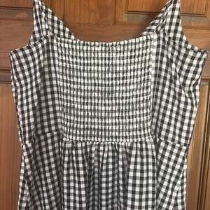 Black and white gingham midi dress from LOFT, perfect for sunny days or a casual outing. This spaghetti strap dress features a flattering twisted front detail on the bodice and a full, flowing skirt. Made from a lightweight and breathable fabric, it offers comfort and style. Excellent pre-owned condition, no visible flaws.