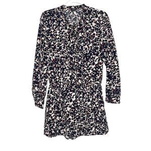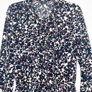 LOFT ANN TAYLOR Long Sleeve Shirt Romper Button Front Floral Navy Maroon Size 2
