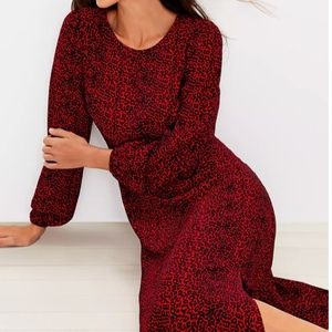 LOFT Animal Print Slit Midi Dress with Long Sleeves in Tango Red - Holiday Christmas Valentine's Thanksgiving colors