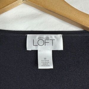 LOFT Ann Taylor Black Tan Trim Cardigan Sweater Ruffle Size Medium