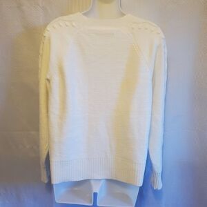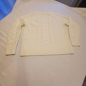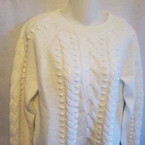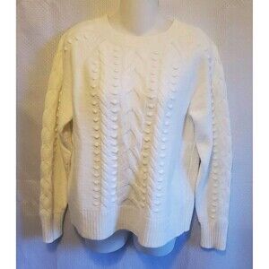 LOFT Ann Taylor Cable Knit White Sweater Womens Sz Medium Soft L/S Winter Warm