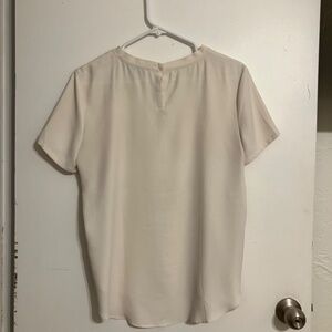 Cream Ann Taylor LOFT shirttail blouse shell, size small. Material is 100% polyester.