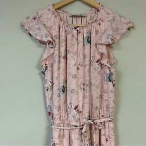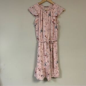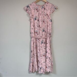 LOFT Ann Taylor Dress Women’s Medium Pink Floral Clip Dot Flounce Prairie Cottagecore