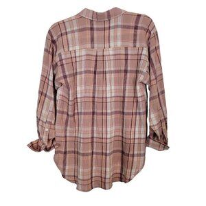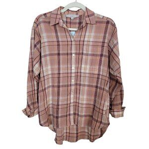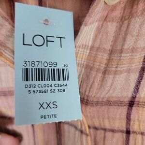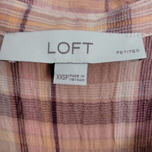 LOFT Ann Taylor Gauze Button Up Shirt Peach Plaid Casual Sz XXS Petite NEW