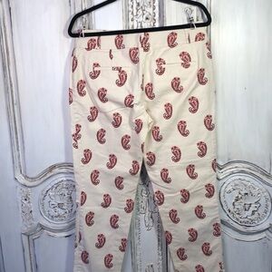 LOFT Ann Taylor Marisa Ankle Pink Paisley Print on Cream Straight Leg Pants