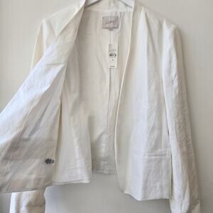 LOFT Ann Taylor white linen, open front, structured, fully lined blazer jacket with 2 front slip pockets. Classic, timeless, versatile style.