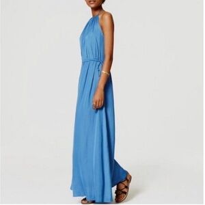 LOFT Ann Taylor | NWT Blue Grecian blue Beach Tassel Halter Style Bohemian Maxi Dress in size Medium