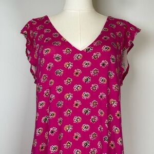 LOFT Ann Taylor Pink Floral Flutter Sleeve V-Neck Dress Women’s Size Medium