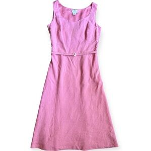 LOFT Ann Taylor Pink Linen Belted Midi Dress Women’s size 8