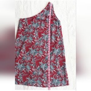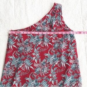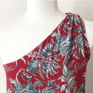 LOFT Ann Taylor Red & Teal Iris One Shoulder Shift Dress Size Small