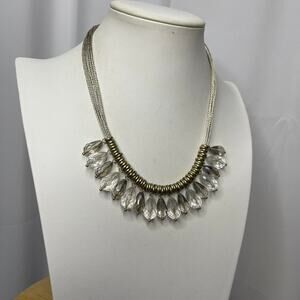 Don’t miss this costume jewelry necklace by LOFT Ann Taylor gray with clear crystals trendy perfect for contemporary casual or career wear.