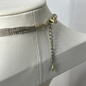 Ann Taylor LOFT necklace costume signed jewelry gray cords with brushed gold and clear faceted crystals very trendy 18” with a 1.5” extension.