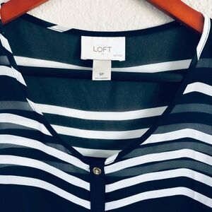 LOFT Ann Taylor Navy Blue Sheer Striped Loose Top SP