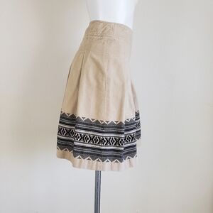 LOFT Aztec Embroidered Pleated Skirt, Size 2