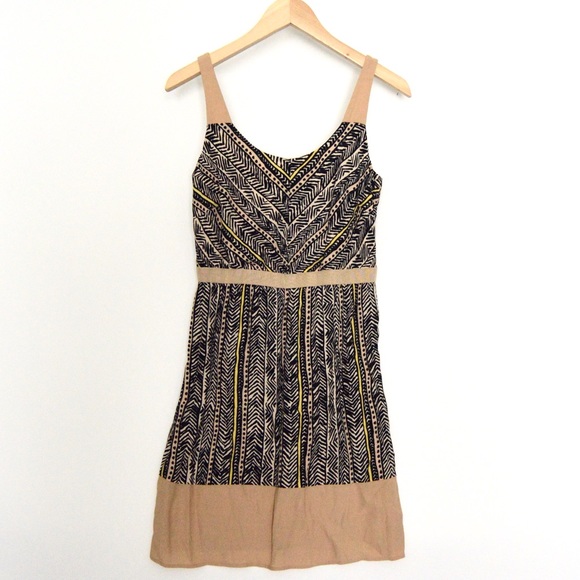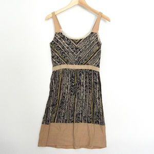Tan, white, black, and yellow print. Great condition. Size 0