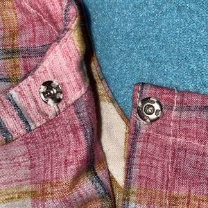 LOFT BEACH tulip style back button snap closure tank plaid soft NEW size S