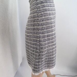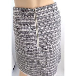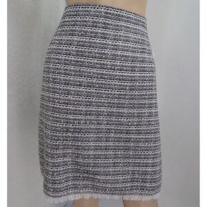 LOFT BLACK & IVORY STRIPED FRINGE HEM CAREER CASUAL TWEED MINI SKIRT SIZE:16 NWT