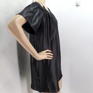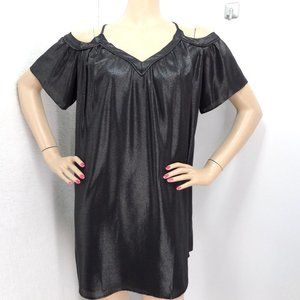 "LOFT" BLACK SHIMMER COLD SHOULDER SWING TRAPEZE MINI METALLIC DRESS SZE: MP NWT