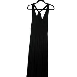 LOFT Beach Black Maxi Dress Sleeveless Deep V Neck Smocked Waist Resortwear