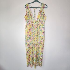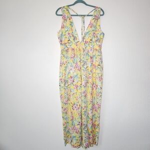 LOFT Beach Floral Double V Wide Leg Jumpsuit M NWT