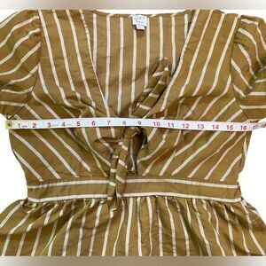 LOFT Beach Golden Tan and White Striped Tie Front Short Sleeve Blouse