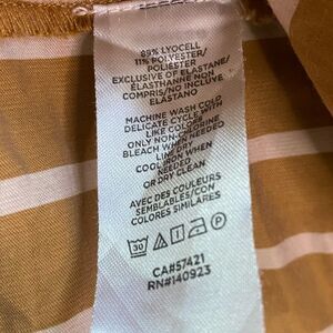 LOFT Beach Golden Tan and White Striped Tie Front Short Sleeve Blouse