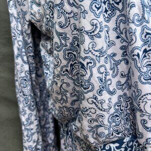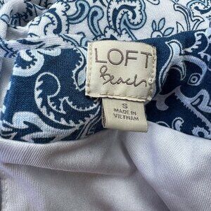LOFT Beach Romper Cover Up Blue White Shorts 3/4 Sleeve V-Neck Size Small S