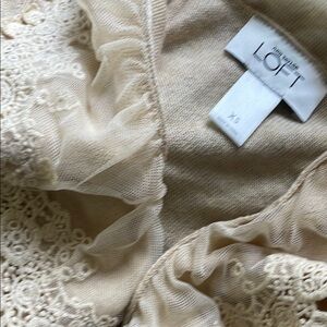 Chic beige sweater with delicate lace trim. Ideal for stylish layering.