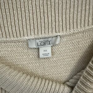 Off-the-shoulder ribbed sweater by LOFT. Soft knit with relaxed fit. Neutral beige tone for easy styling. Simple, classic silhouette.