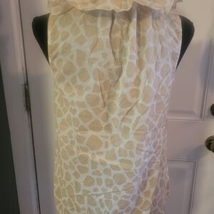 LOFT Beige Patterned Ruffle Blouse