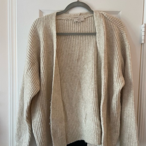 LOFT Beige Ribbed Cardigan