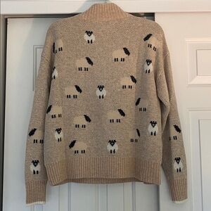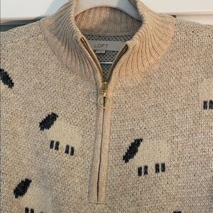 LOFT Beige Sheep Pattern Half-Zip Sweater