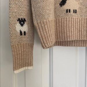 Charming beige sweater with playful sheep design. Features a convenient half-zip.