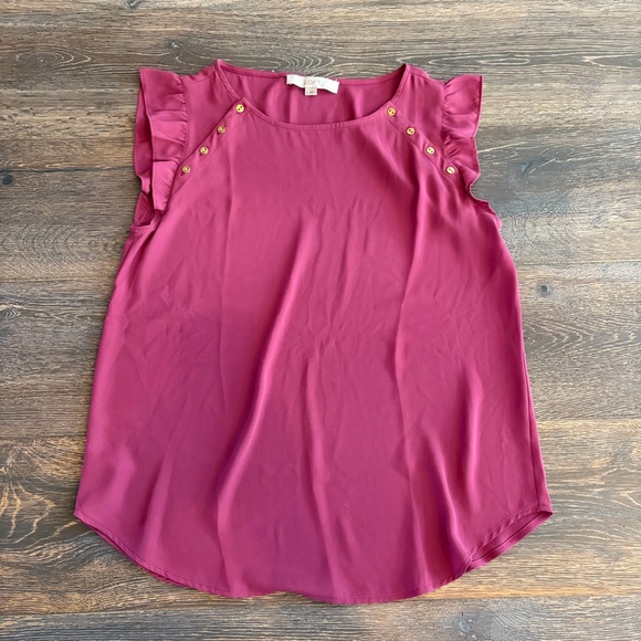 LOFT Berry Ruffle Sleeve Shell with Gold Buttons