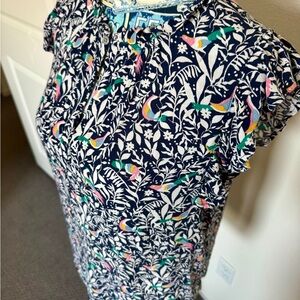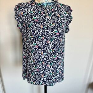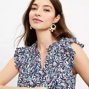 LOFT Bird Ruffle Split Neck Shell