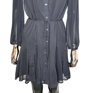 🆕 LOFT Black Chiffon Button-Down Long Sleeve Mini Dress with Tie Waist SZ Small
