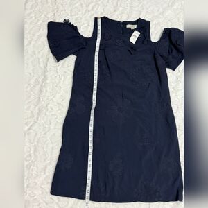 This chic blue mini dress from LOFT features a stylish cold shoulder neckline and a sleeveless design, perfect for a night out. Its shirt-style silhouette offers a modern twist on a classic look, making it a versatile choice for casual or cocktail occasions.