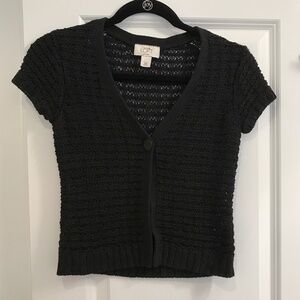 LOFT Black Crochet Open Mesh stitch Shortsleeve Cardigan