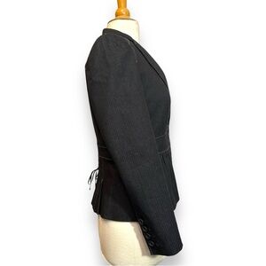 LOFT Black Denim Blazer Suit Jacket with Corset Style Back, Small 6, Office Chic