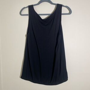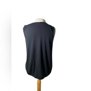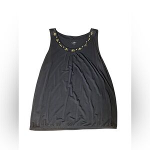 This relaxed black tank top from LOFT features intricate embellishments around the neckline, adding a touch of elegance to its comfortable, flowing silhouette. Perfect for a stylish yet laid-back look, this top is a versatile addition to any wardrobe.
